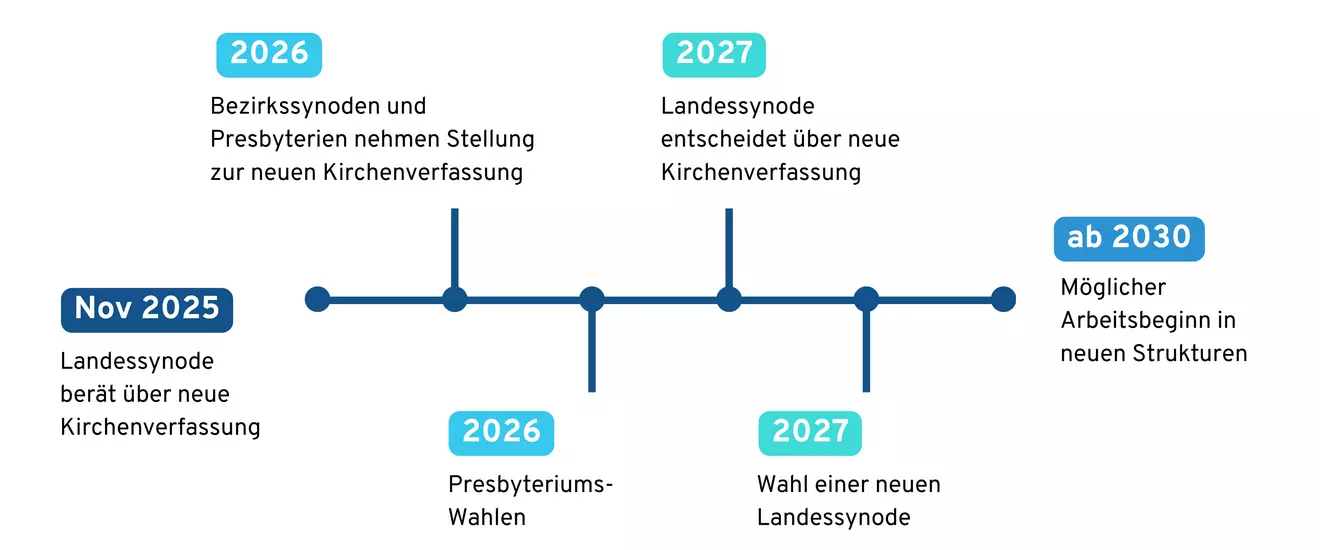 Die Vertreter*innen der Landessynode haben mit den "Eckpunkte-Papieren" im Mai 2025 ein starkes Reformpaket auf den Weg gebracht, um die Kirche für die nächsten Jahrzehnte fit zu machen. Einen Überblick über die Entscheidungen der Landessynode findest du hier.