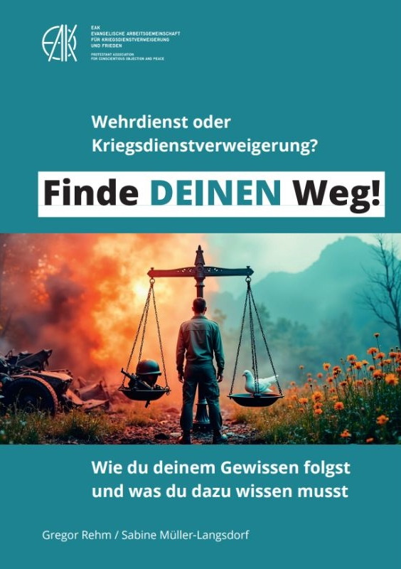 Wir haben auf der Homepage der Evangelischen Arbeitsgemeinschaft Kriegsdienstverweigerung und Frieden Material zusammengestellt. Da gibt es zum Beispiel ein Erklärvideo, wo der Ablauf in einem KDV-Verfahren genau beschrieben ist. Zur eigenen Reflexion der Gewissenshaltungen haben wir die Broschüre „Wehrdienst oder Kriegsdienstverweigerung Findet deinen Weg“ herausgegeben. Dargestellt sind darin grundlegende Aspekte von Verantwortung, von Freiwilligkeit. Wir stellen die Frage nach menschlicher Sicherheit und staatlicher Sicherheit und präsentieren verschiedene inhaltliche Vorstellungen. Das alles soll dabei helfen, die eigene Haltung zu reflektieren, so dass man am Ende tatsächlich zu einer aussagefähigen Entscheidung kommen kann.